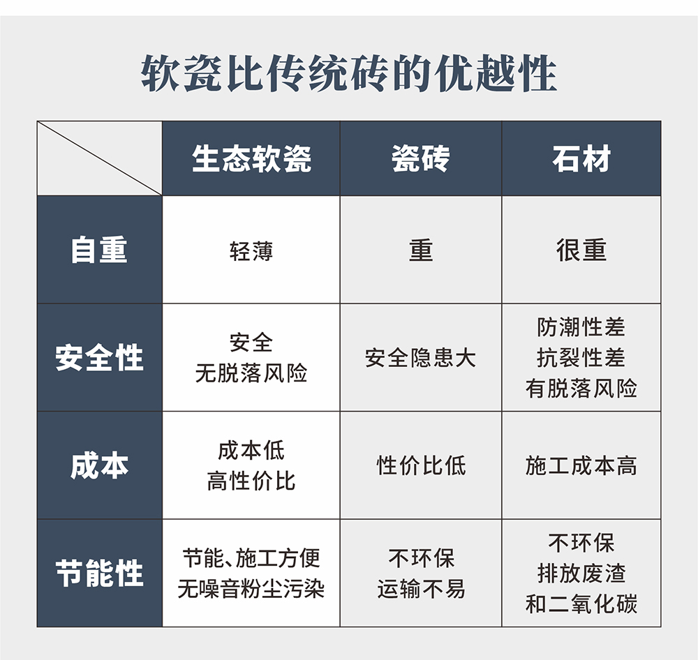 薄讓空間更充裕,每片厚0.2-0.4CM而傳統(tǒng)軟瓷厚度1CM左右。